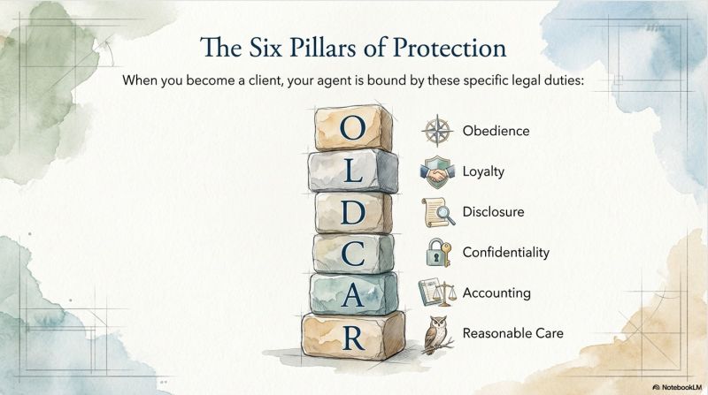 While the overarching requirement is to act in your "best interest," the real estate industry typically breaks down these practical duties into six categories, often remembered by the acronym OLDCAR. This is what having a fiduciary means on a day-to-day basis: